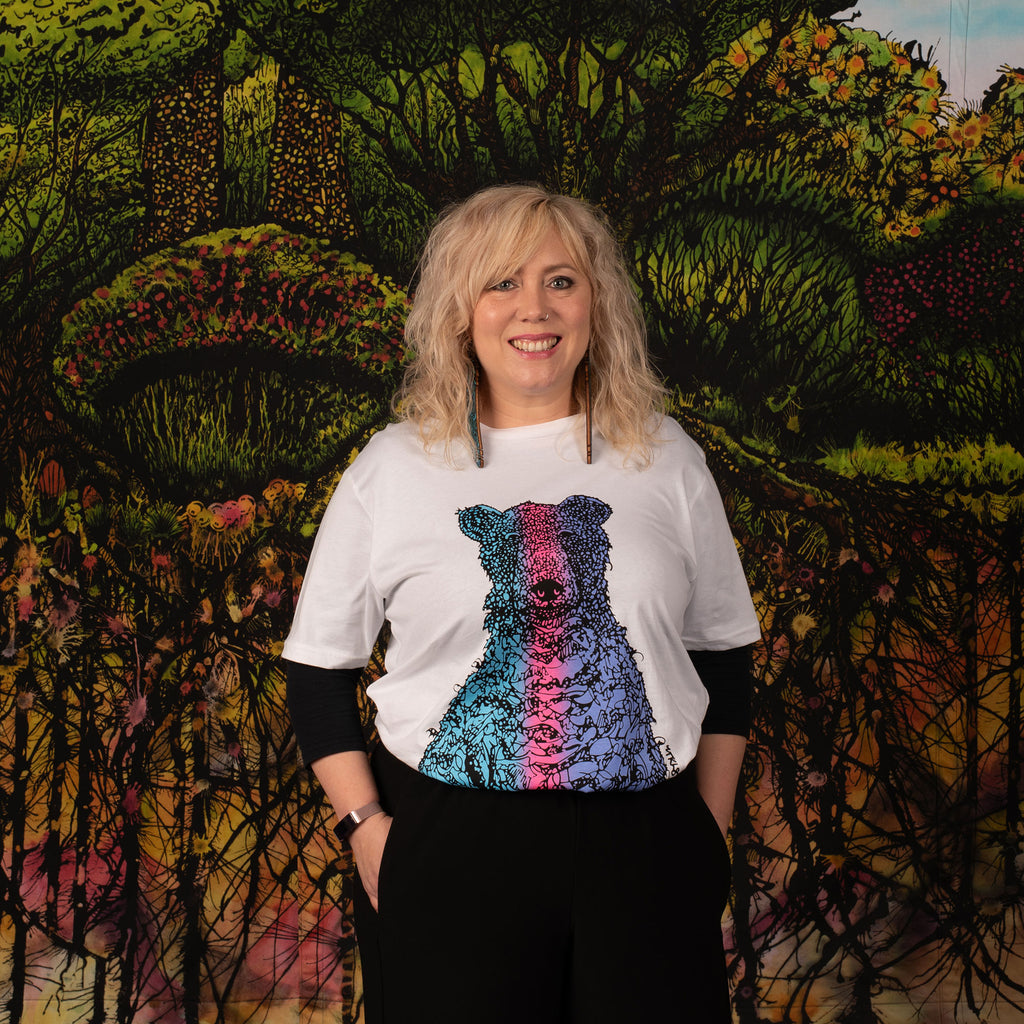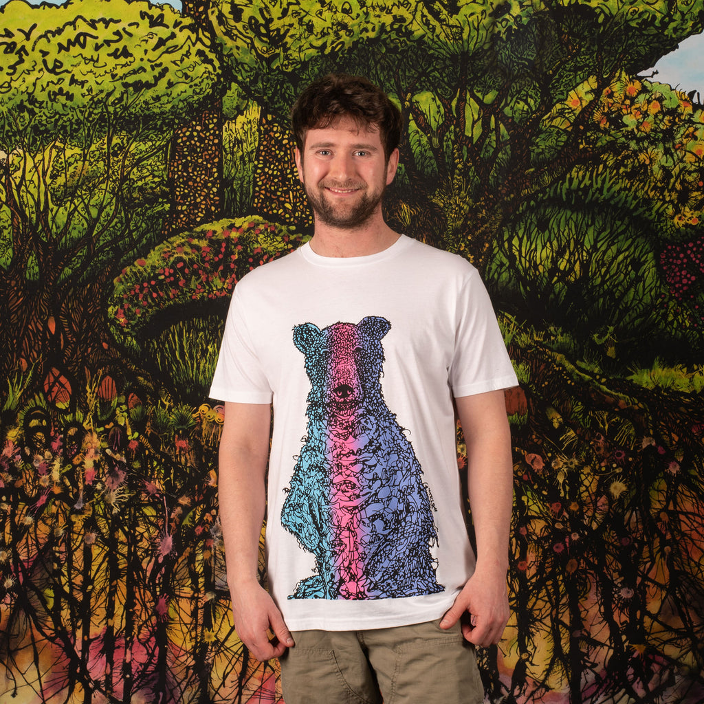 Artwork: "Blueberry Bear" | T-shirt: White | Ink: Fluro Blue/PInk/Purple fade