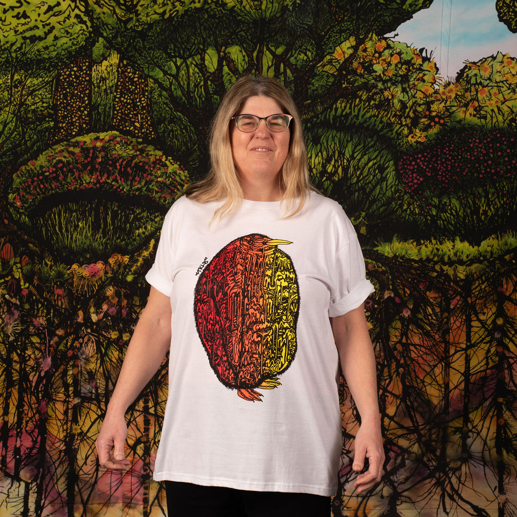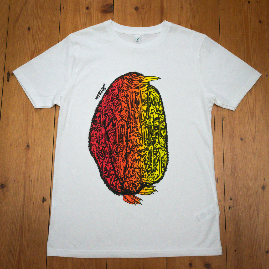 Artwork: "808 Penguin" | T-shirt: White | Ink: Fluro sunset fade